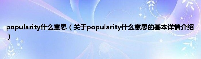 本文关于popularity什么意思的基本详情介绍就讲解完毕,希望对大家有所帮助。