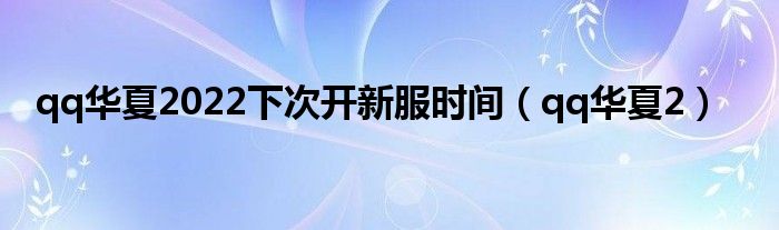 qq华夏2022下次开新服时间(qq华夏2)