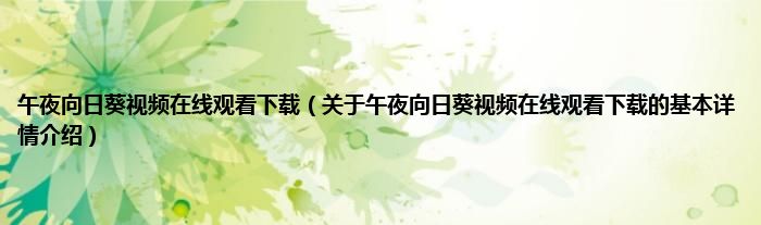 午夜向日葵视频在线观看下载(关于午夜向日葵视频在线观看下载的基本详情介绍)