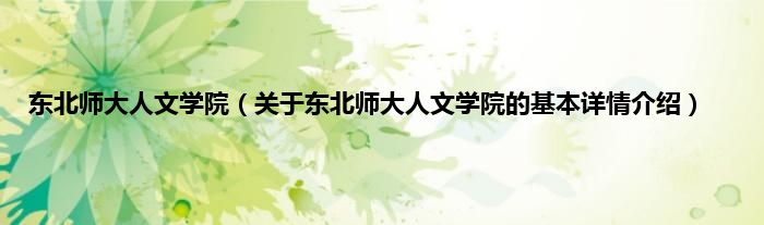本文关于东北师大人文学院的基本详情介绍就讲解完毕,希望对大家有所帮助。
