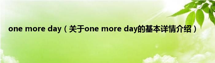 本文关于one more day的基本详情介绍就讲解完毕,希望对大家有所帮助。
