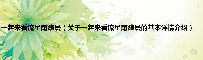 本文关于一起来看流星雨魏晨的基本详情介绍就讲解完毕,希望对大家有所帮助。