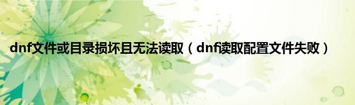 大家好,小问来为大家解答以上问题。dnf文件或目录损坏且无法读取,dnf读取配置文件失败这个很多人还不知道,现在让我们一起来看看吧!