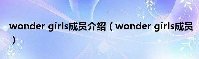 大家好,小问来为大家解答以上问题。wonder girls成员介绍,wonder girls成员这个很多人还不知道,现在让我们一起来看看吧!