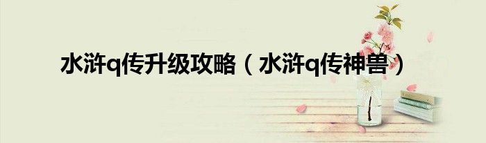 大家好,小问来为大家解答以上问题。水浒q传升级攻略,水浒q传神兽这个很多人还不知道,现在让我们一起来看看吧!