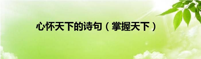 以上就是【心怀天下的诗句,掌握天下】相关内容。