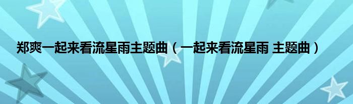 以上就是【郑爽一起来看流星雨主题曲,一起来看流星雨 主题曲】相关内容。
