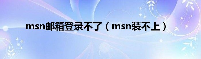 以上就是【msn邮箱登录不了,msn装不上】相关内容。