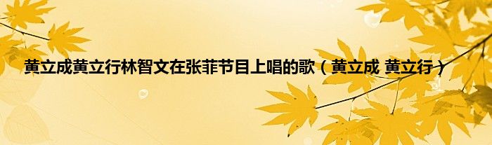 以上就是【黄立成黄立行林智文在张菲节目上唱的歌,黄立成 黄立行】相关内容。