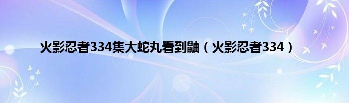 大家好,小问来为大家解答以上问题。火影忍者334集大蛇丸看到鼬,火影忍者334这个很多人还不知道,现在让我们一起来看看吧!