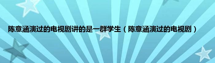 以上就是【陈意涵演过的电视剧讲的是一群学生,陈意涵演过的电视剧】相关内容。