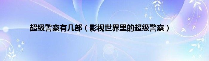 大家好,小问来为大家解答以上问题。超级警察有几部,影视世界里的超级警察这个很多人还不知道,现在让我们一起来看看吧!