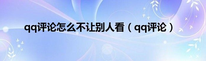 以上就是【qq评论怎么不让别人看,qq评论】相关内容。