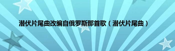 大家好,小问来为大家解答以上问题。潜伏片尾曲改编自俄罗斯那首歌,潜伏片尾曲这个很多人还不知道,现在让我们一起来看看吧!