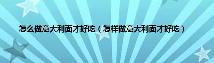 以上就是【怎么做意大利面才好吃,怎样做意大利面才好吃】相关内容。