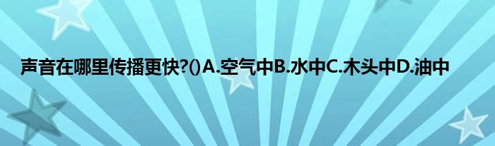 以上就是【声音在哪里传播更快?()A.空气中B.水中C.木头中D.油中】相关内容。