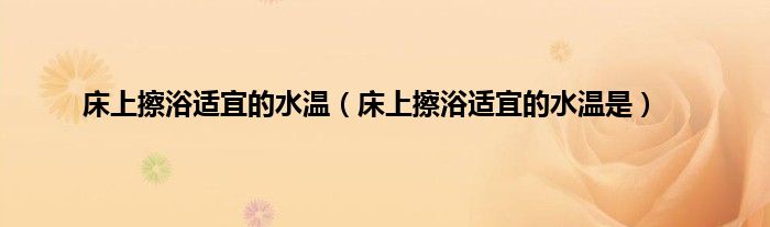 以上就是【床上擦浴适宜的水温,床上擦浴适宜的水温是】相关内容。