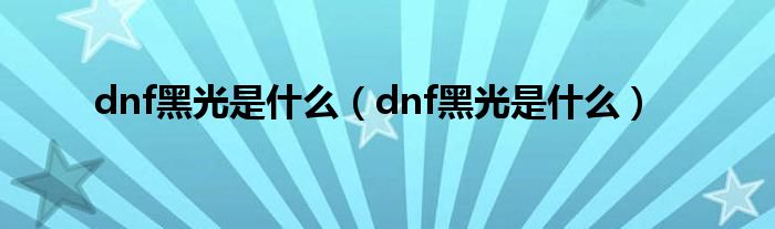 dnf黑光是什么(dnf黑光是什么)