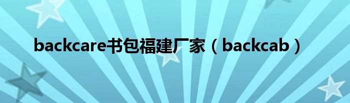 大家好,小问来为大家解答以上问题。backcare书包福建厂家,backcab这个很多人还不知道,现在让我们一起来看看吧!