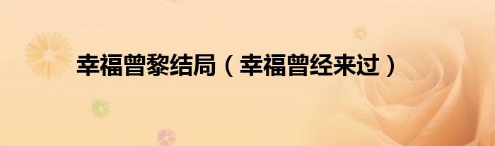 大家好,小问来为大家解答以上问题。幸福曾黎结局,幸福曾经来过这个很多人还不知道,现在让我们一起来看看吧!
