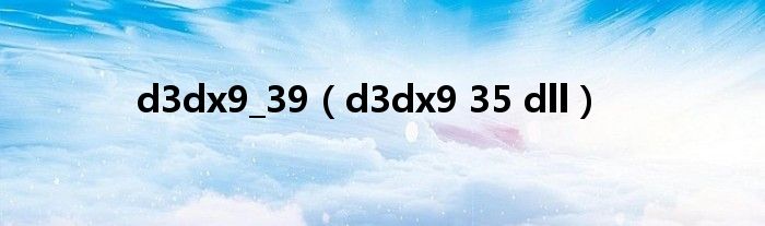 大家好,小问来为大家解答以上问题。d3dx9_39,d3dx9 35 dll这个很多人还不知道,现在让我们一起来看看吧!