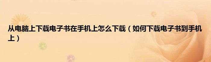 以上就是【从电脑上下载电子书在手机上怎么下载,如何下载电子书到手机上】相关内容。