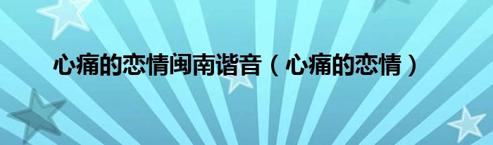 以上就是【心痛的恋情闽南谐音,心痛的恋情】相关内容。