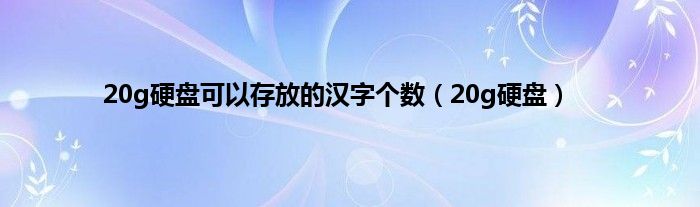 大家好,小问来为大家解答以上问题。20g硬盘可以存放的汉字个数,20g硬盘这个很多人还不知道,现在让我们一起来看看吧!