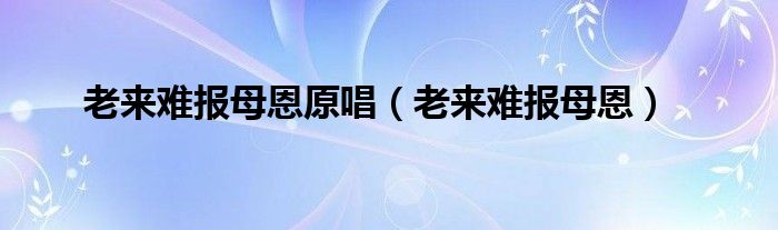 以上就是【老来难报母恩原唱,老来难报母恩】相关内容。