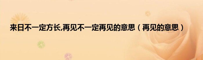 以上就是【来日不一定方长,再见不一定再见的意思,再见的意思】相关内容。