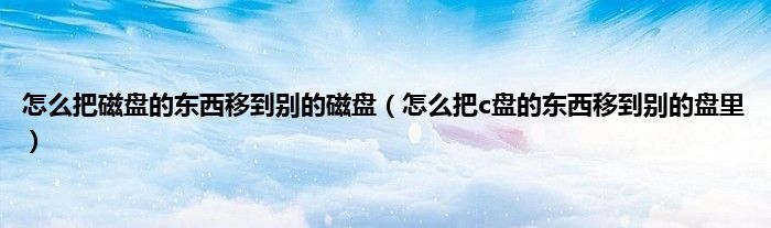以上就是【怎么把磁盘的东西移到别的磁盘,怎么把c盘的东西移到别的盘里】相关内容。