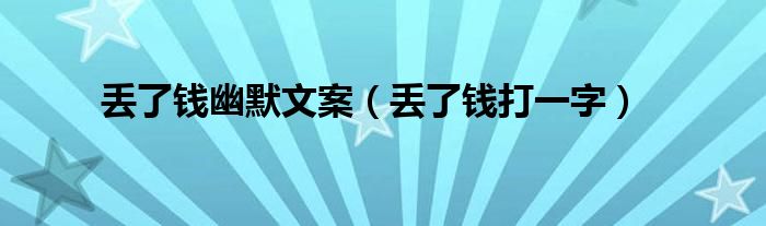 大家好,小问来为大家解答以上问题。丢了钱幽默文案,丢了钱打一字这个很多人还不知道,现在让我们一起来看看吧!