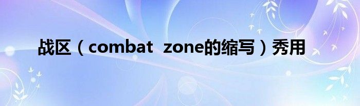 大家好,小问来为大家解答以上问题。战区,combat zone的缩写秀用这个很多人还不知道,现在让我们一起来看看吧!