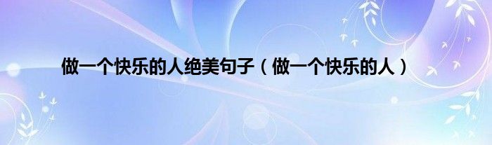 大家好,小问来为大家解答以上问题。做一个快乐的人绝美句子,做一个快乐的人这个很多人还不知道,现在让我们一起来看看吧!