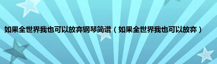 大家好,小问来为大家解答以上问题。如果全世界我也可以放弃钢琴简谱,如果全世界我也可以放弃这个很多人还不知道,现在让我们一起来看看吧!