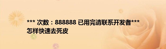 大家好,*** 次数:888888 已用完请联系开发者*** 怎样快速去死皮很多人还不知道,现在让我们一起来看看吧!