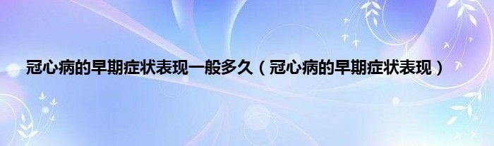 本文,冠心病的早期症状表现一般多久,冠心病的早期症状表现到此就分享完毕,希望对大家有所帮助。