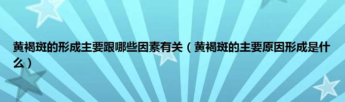 本文,黄褐斑的形成主要跟哪些因素有关,黄褐斑的主要原因形成是什么到此就分享完毕,希望对大家有所帮助。