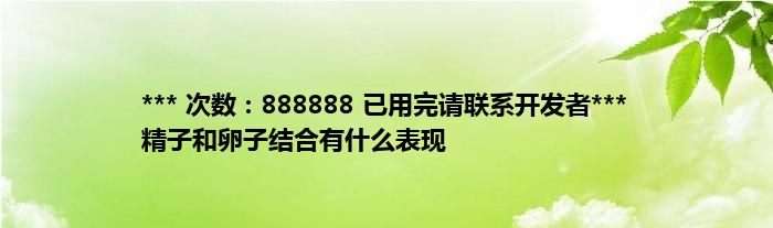 本文,*** 次数:888888 已用完请联系开发者*** 精子和卵子结合有什么表现到此就分享完毕,希望对大家有所帮助。