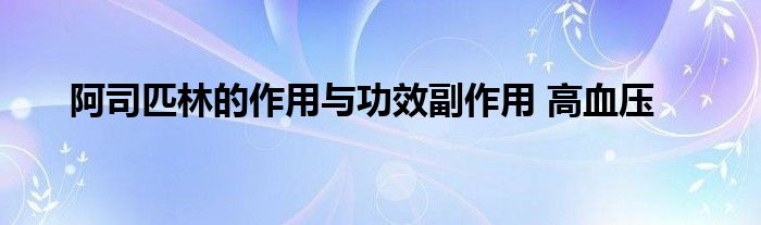 本文,阿司匹林的作用与功效副作用 高血压到此就分享完毕,希望对大家有所帮助。