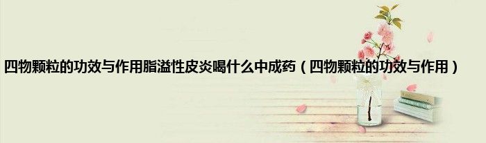 本文,四物颗粒的功效与作用脂溢性皮炎喝什么中成药,四物颗粒的功效与作用到此就分享完毕,希望对大家有所帮助。