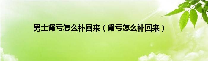 本文,男士肾亏怎么补回来,肾亏怎么补回来到此就分享完毕,希望对大家有所帮助。