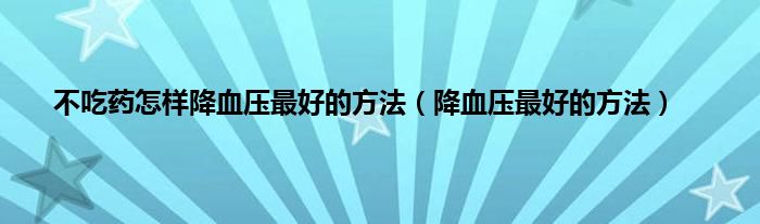 本文,不吃药怎样降血压最好的方法,降血压最好的方法到此就分享完毕,希望对大家有所帮助。