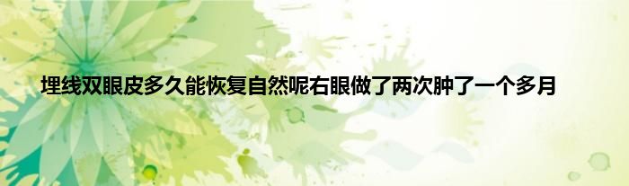 大家好,埋线双眼皮多久能恢复自然呢右眼做了两次肿了一个多月很多人还不知道,现在让我们一起来看看吧!