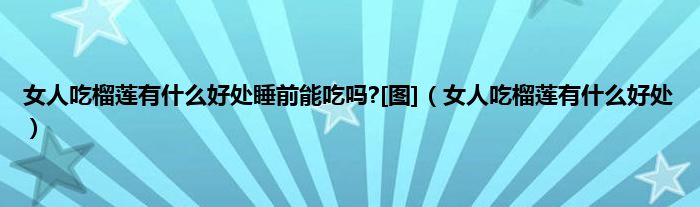 本文,女人吃榴莲有什么好处睡前能吃吗?[图],女人吃榴莲有什么好处到此就分享完毕,希望对大家有所帮助。