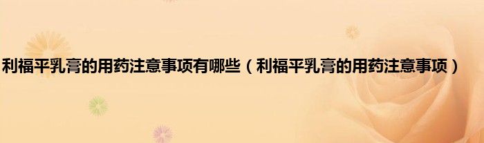 本文,利福平乳膏的用药注意事项有哪些,利福平乳膏的用药注意事项到此就分享完毕,希望对大家有所帮助。