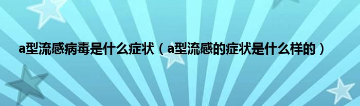 本文,a型流感病毒是什么症状,a型流感的症状是什么样的到此就分享完毕,希望对大家有所帮助。