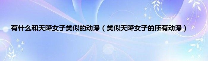 大家好,小问来为大家解答以上问题。有什么和天降女子类似的动漫,类似天降女子的所有动漫这个很多人还不知道,现在让我们一起来看看吧!
