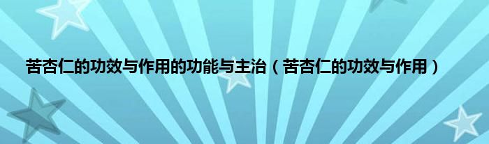 本文,苦杏仁的功效与作用的功能与主治,苦杏仁的功效与作用到此就分享完毕,希望对大家有所帮助。