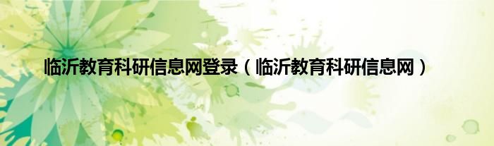 大家好,小问来为大家解答以上问题。临沂教育科研信息网登录,临沂教育科研信息网这个很多人还不知道,现在让我们一起来看看吧!